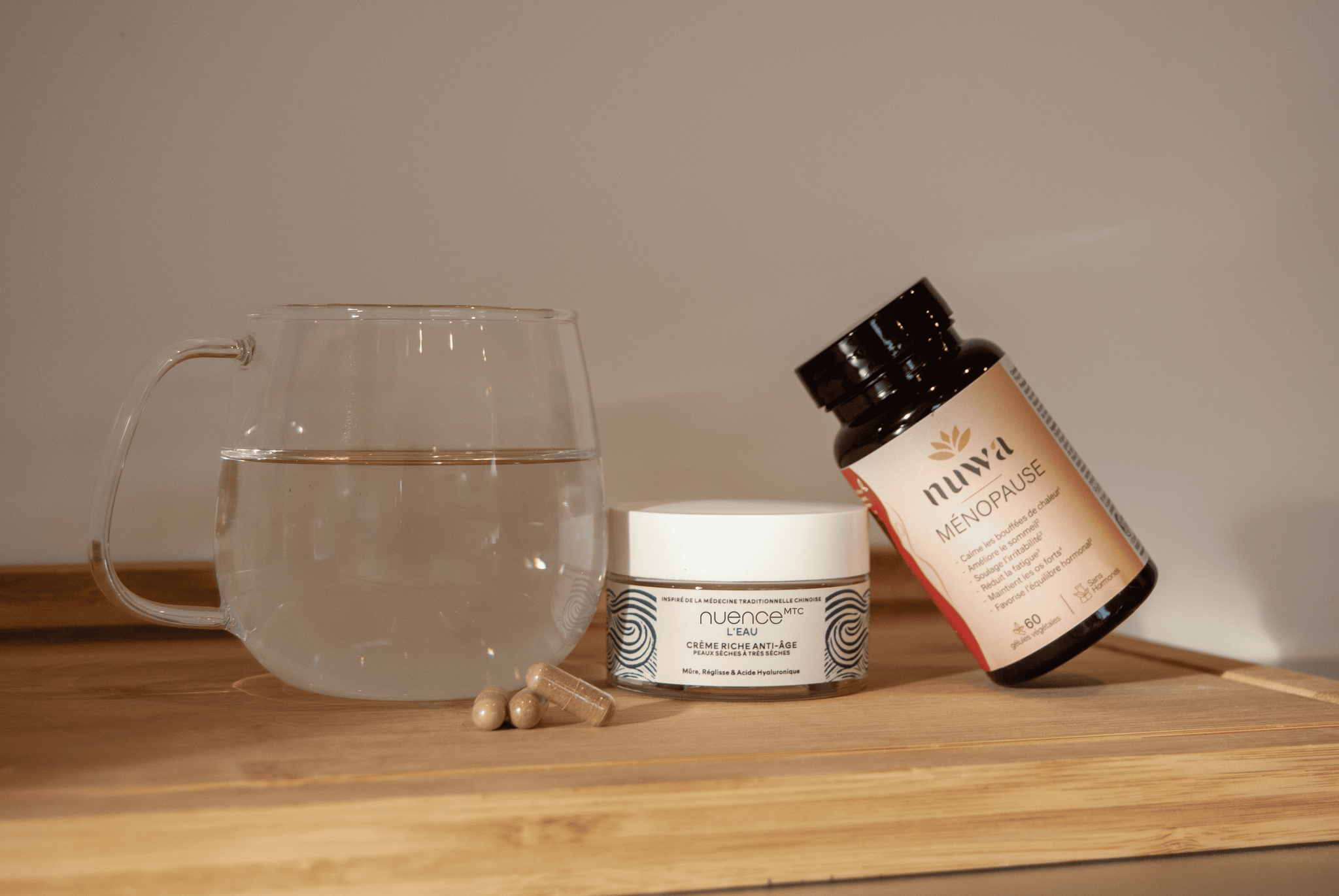 Entdecken Sie L'EAU, die feuchtigkeitsspendende Gesichtscreme mit Anti-Aging-Wirkung von Nuence MTC. Sie wurde speziell für reife, trockene bis sehr trockene Haut entwickelt und besteht zu 98,8 % aus Inhaltsstoffen natürlichen Ursprungs. Ihre reichhaltige, cremige Textur umhüllt die Haut sofort und sorgt für ein angenehmes Hautgefühl. Sie kombiniert zwei kraftvolle, pflanzliche Wirkstoffe aus der traditionellen chinesischen Medizin für sichtbar pralle und hydratisierte Haut.