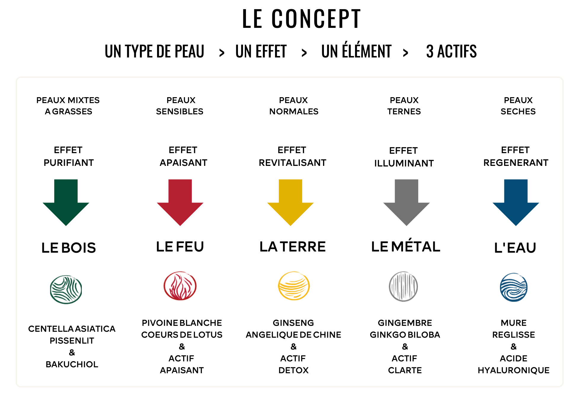 Cette synergie entre type de peau, élément et sélection des plantes permet donc d’adapter de façon très fine le choix de votre crème de jour.
